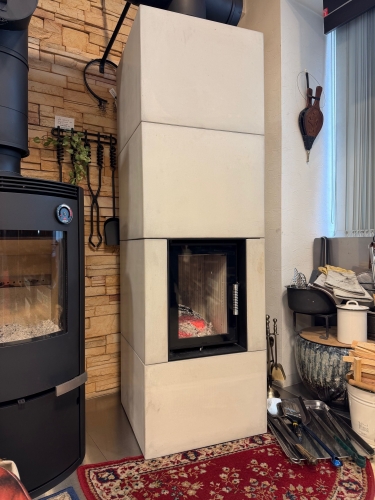 2階の展示場には、何やら見慣れない形状の薪ストーブが実演展示されています![]()