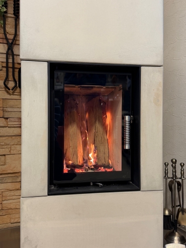扉を開けると、ビルトインタイプの薪ストーブメーカで有名なドイツのホクスターの